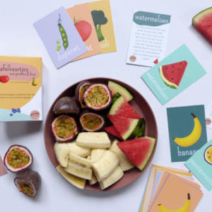 Met deze kaartjes maak je van ieder eetmoment een leuk én leerzaam moment. Deze tafelkaartjes met groente en fruit stimuleert proeven én leren eten spelenderwijs. Perfect voor bij de kinderopvang!