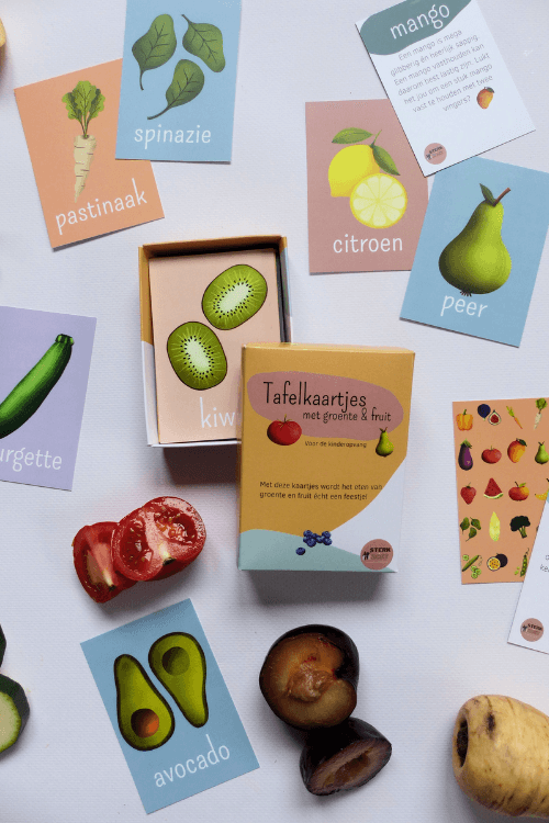 Het doel van de kaartjes is spelenderwijs meer leren over groente en fruit én gaan proeven!