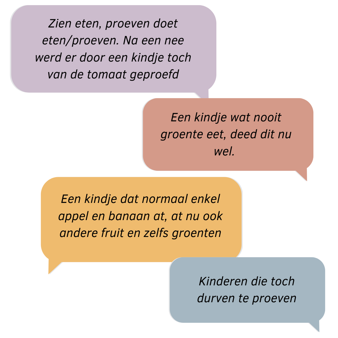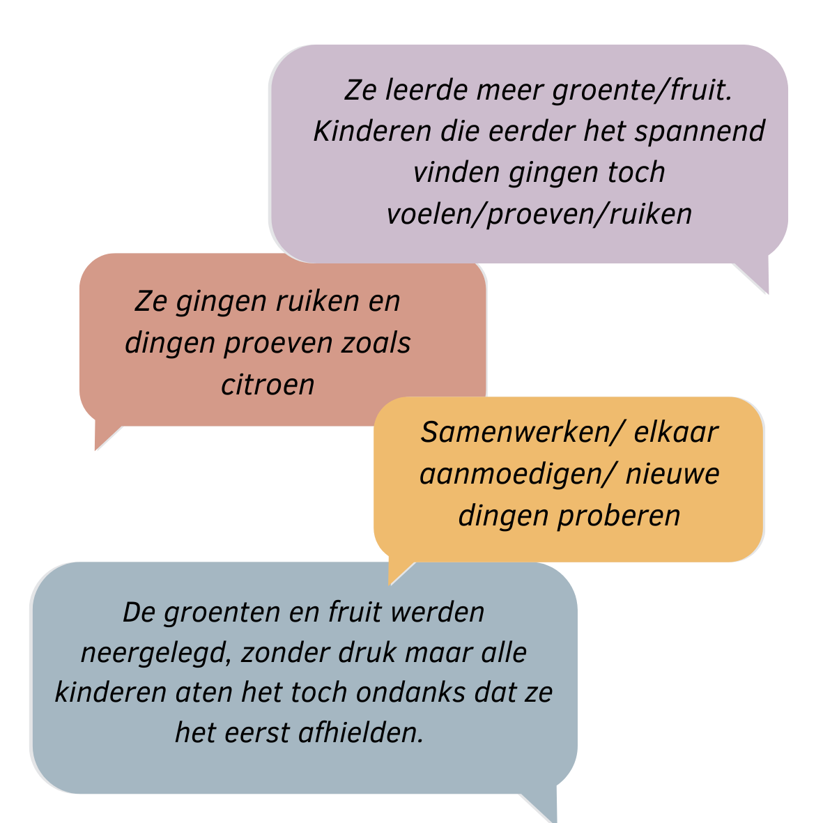 De kinderen gaan ruiken, voelen, raden, proeven én leren. Op hun eigen tempo, zonder druk. En ja – zelfs de grootste ‘lust-ik-niet’ roeper doet vaak als eerste weer mee!